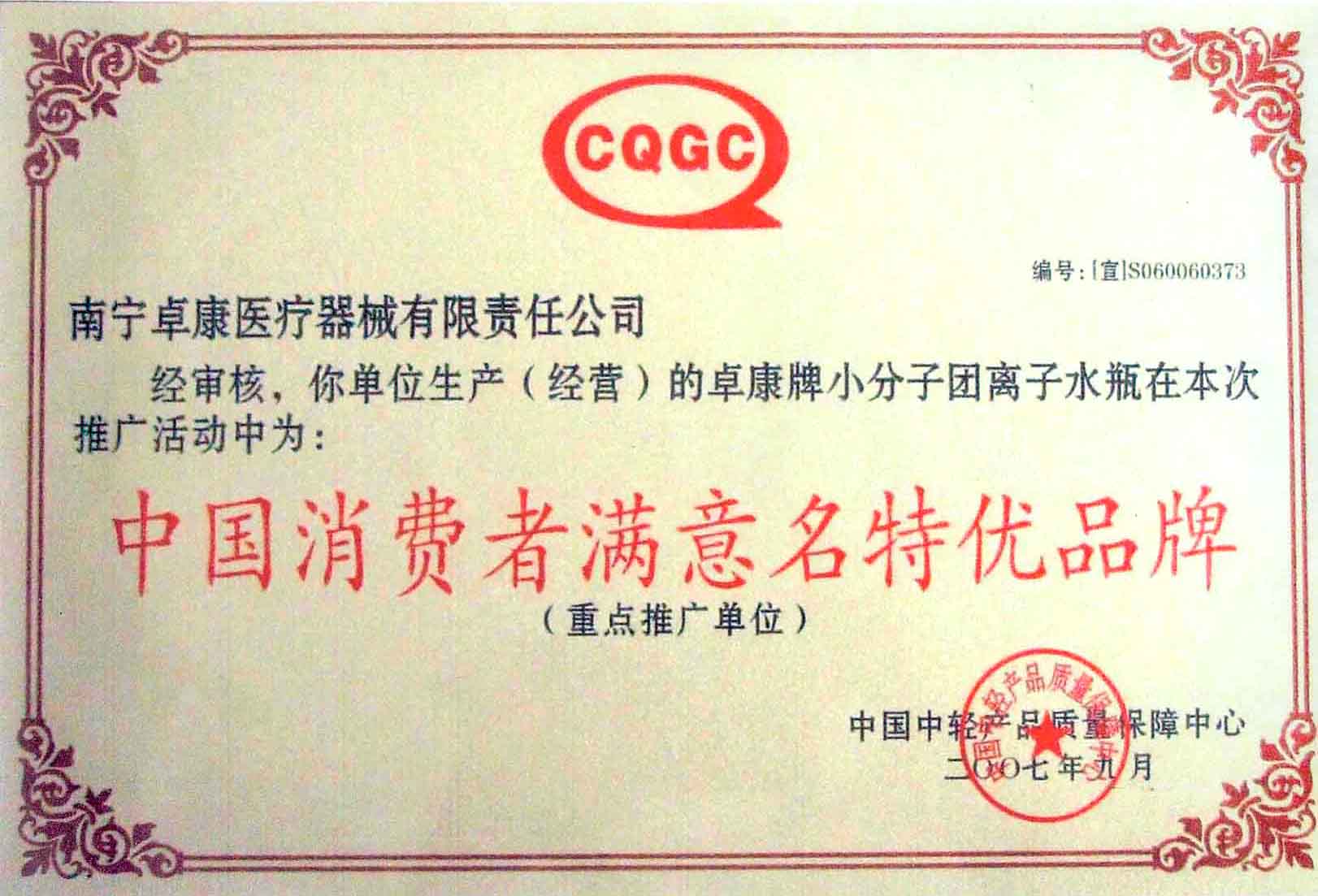 卓康牌離子水瓶榮獲中國名特優(yōu)品牌[點小圖見大圖] *榮獲中國醫(yī)療器械行業(yè)十大影響力品牌[點小圖見大圖]--------