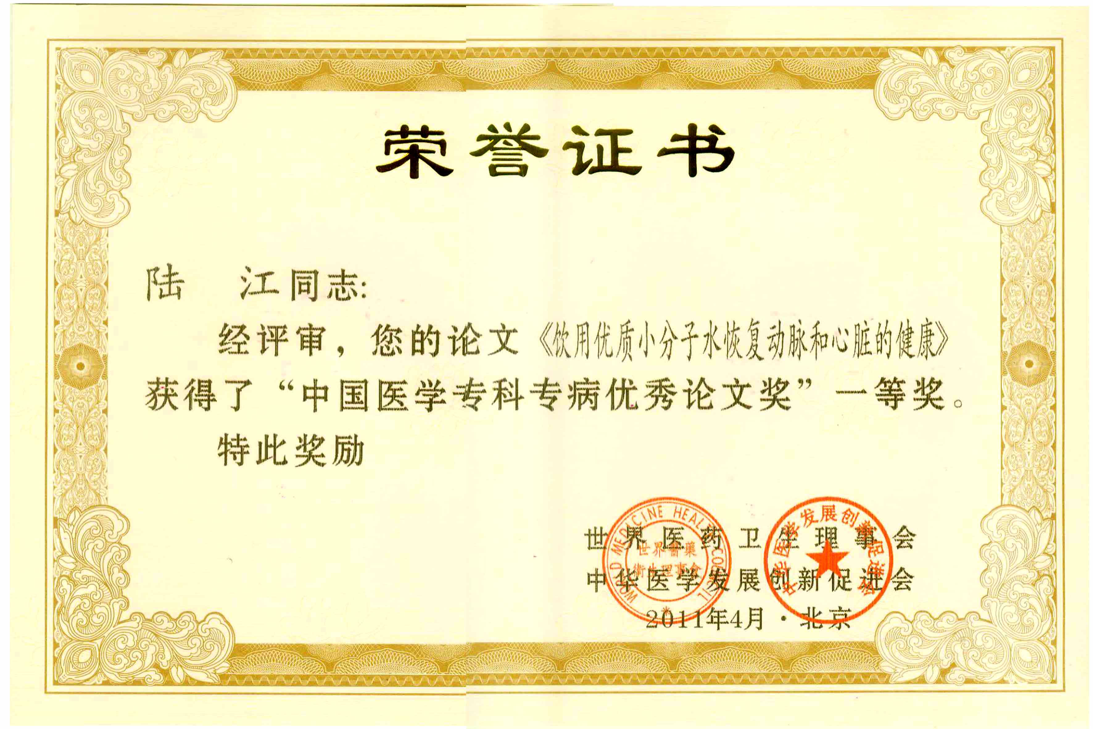 -----我是從事建筑的高工,本來沒有資格去攻克醫(yī)學難題,卻為了自身健康才扣響醫(yī)學的大門。由于我1990年患高血壓,因怕中風才研究發(fā)明了離子水瓶,我把水處理成微小分子團水,飲用后治愈了高血壓。便于1993年底送到三家省級醫(yī)院做臨床試用4個月。經(jīng)北京和廣西醫(yī)學專家鑒定:"降脂降壓效果好"," 能擴大心腦動脈流量,改善心腦電圖以及微循環(huán)","對治療心腦動脈粥樣硬化、高血壓、高血脂有良好的醫(yī)療保健作用。""產(chǎn)品的技術(shù)性能和療效達到了同類產(chǎn)品的國內(nèi)領先水平,經(jīng)廣西醫(yī)學科學情報研究所檢索,未見國外有類似報道。"中國醫(yī)學科學院張正國教授從美國國立醫(yī)學圖書館數(shù)據(jù)庫存Medline檢索英俄文資料,均未見類似報告。2000年上市后,我為了對消費者負責而繼續(xù)觀察研究,一直通過《信譽卡》和《質(zhì)量跟蹤調(diào)查書》向患者承諾療效,請用戶使用6個月后反饋效果。和脂壓患者飲用2至5個月內(nèi),消除癥狀,停服藥物,血壓正常;冠心病患者飲用3~5個月逐漸減輕至消除心絞痛、房顫等癥狀,不再服藥,飲用1年左右心電圖正常,經(jīng)冠脈造影掃描無明顯狹窄,表明冠心病痊愈。大量患者還反映許多衰弱器官被修復,讓前列腺增生、慢性咽喉炎、慢性氣管炎、支氣管炎、慢性胃炎、腸炎和膽囊炎等不藥而愈;2型糖尿病患者是因為胰島衰弱致病,飲用該水半年至一年,逐漸減藥至停藥,血糖尿糖正常,真正治愈2型糖尿病。中風后遺癥患者飲用六七個月,可逐漸減輕至消除肢體和語言障礙,表明飲用該水能讓壽命很長的神經(jīng)元細胞逐漸修復,奇跡般地恢復肢體和語言功能。飲用后還使胸腺和脾臟兩個重要的免疫器官被修復和增強,產(chǎn)生免疫細胞多,提高了免疫力,使人不生病或少生病。自此, 飲用微小分子團水創(chuàng)造了攻克冠心病、高(低)血壓和糖尿病三大醫(yī)學難題的奇跡。人們對此感到不可思議,但實踐是檢驗真理的唯一標準。