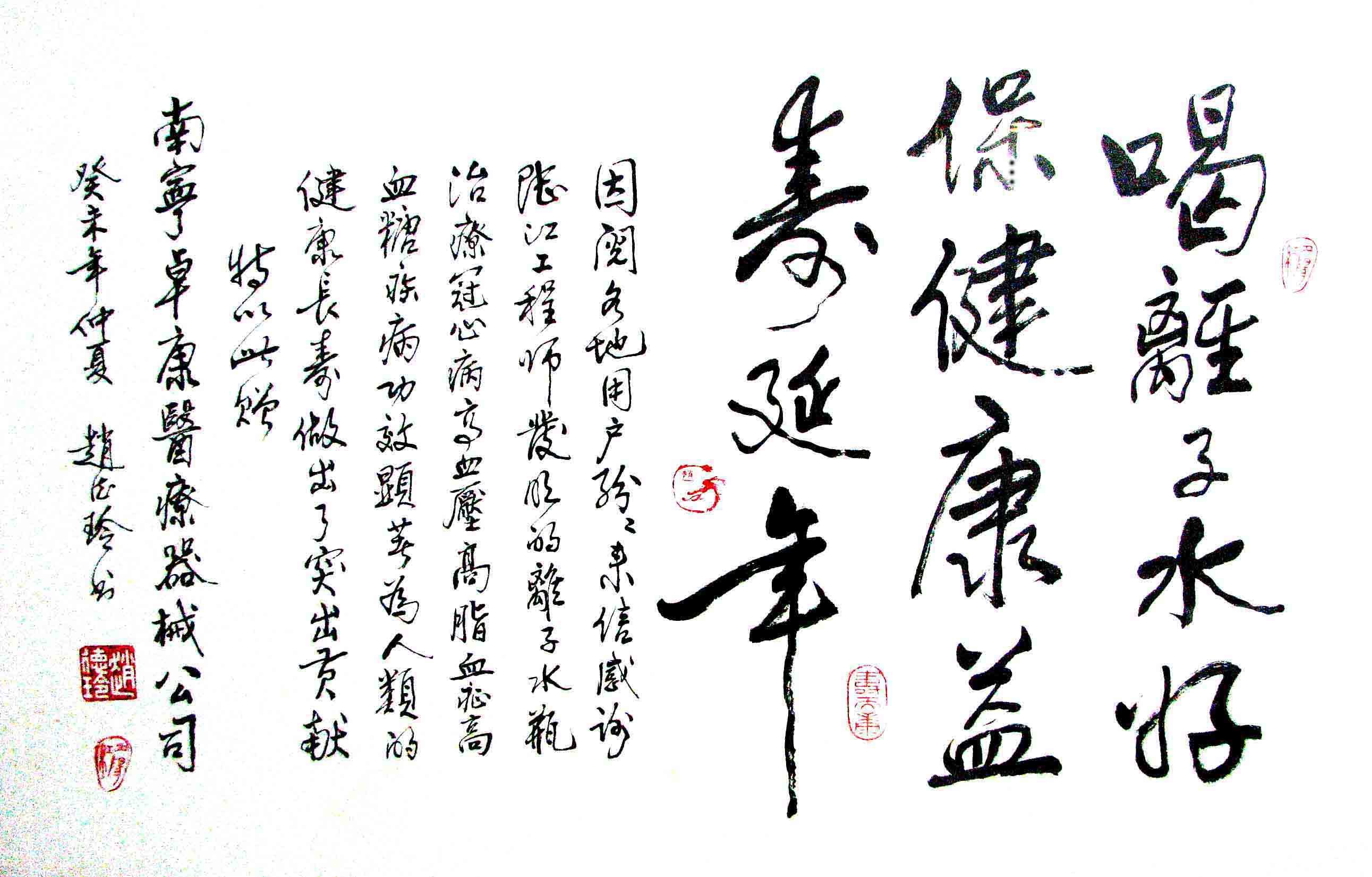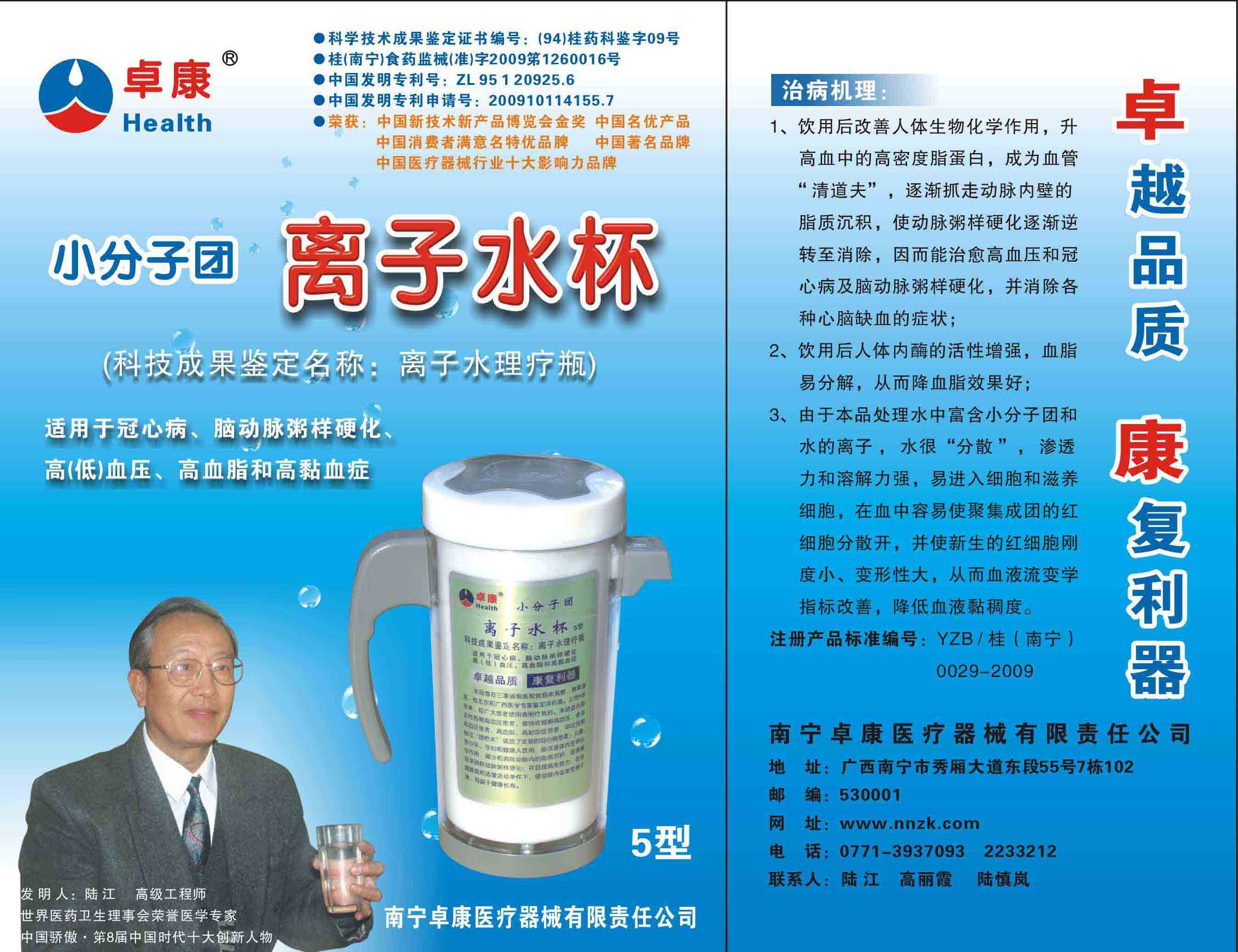 -----我是從事建筑的高工,本來沒有資格去攻克醫(yī)學難題,卻為了自身健康才扣響醫(yī)學的大門。由于我1990年患高血壓,因怕中風才研究發(fā)明了離子水瓶,我把水處理成微小分子團水,飲用后治愈了高血壓。便于1993年底送到三家省級醫(yī)院做臨床試用4個月。經(jīng)北京和廣西醫(yī)學專家鑒定:"降脂降壓效果好"," 能擴大心腦動脈流量,改善心腦電圖以及微循環(huán)","對治療心腦動脈粥樣硬化、高血壓、高血脂有良好的醫(yī)療保健作用。""產(chǎn)品的技術(shù)性能和療效達到了同類產(chǎn)品的國內(nèi)領先水平,經(jīng)廣西醫(yī)學科學情報研究所檢索,未見國外有類似報道。"中國醫(yī)學科學院張正國教授從美國國立醫(yī)學圖書館數(shù)據(jù)庫存Medline檢索英俄文資料,均未見類似報告。2000年上市后,我為了對消費者負責而繼續(xù)觀察研究,一直通過《信譽卡》和《質(zhì)量跟蹤調(diào)查書》向患者承諾療效,請用戶使用6個月后反饋效果。和脂壓患者飲用2至5個月內(nèi),消除癥狀,停服藥物,血壓正常;冠心病患者飲用3~5個月逐漸減輕至消除心絞痛、房顫等癥狀,不再服藥,飲用1年左右心電圖正常,經(jīng)冠脈造影掃描無明顯狹窄,表明冠心病痊愈。大量患者還反映許多衰弱器官被修復,讓前列腺增生、慢性咽喉炎、慢性氣管炎、支氣管炎、慢性胃炎、腸炎和膽囊炎等不藥而愈;2型糖尿病患者是因為胰島衰弱致病,飲用該水半年至一年,逐漸減藥至停藥,血糖尿糖正常,真正治愈2型糖尿病。中風后遺癥患者飲用六七個月,可逐漸減輕至消除肢體和語言障礙,表明飲用該水能讓壽命很長的神經(jīng)元細胞逐漸修復,奇跡般地恢復肢體和語言功能。飲用后還使胸腺和脾臟兩個重要的免疫器官被修復和增強,產(chǎn)生免疫細胞多,提高了免疫力,使人不生病或少生病。自此, 飲用微小分子團水創(chuàng)造了攻克冠心病、高(低)血壓和糖尿病三大醫(yī)學難題的奇跡。人們對此感到不可思議,但實踐是檢驗真理的唯一標準。