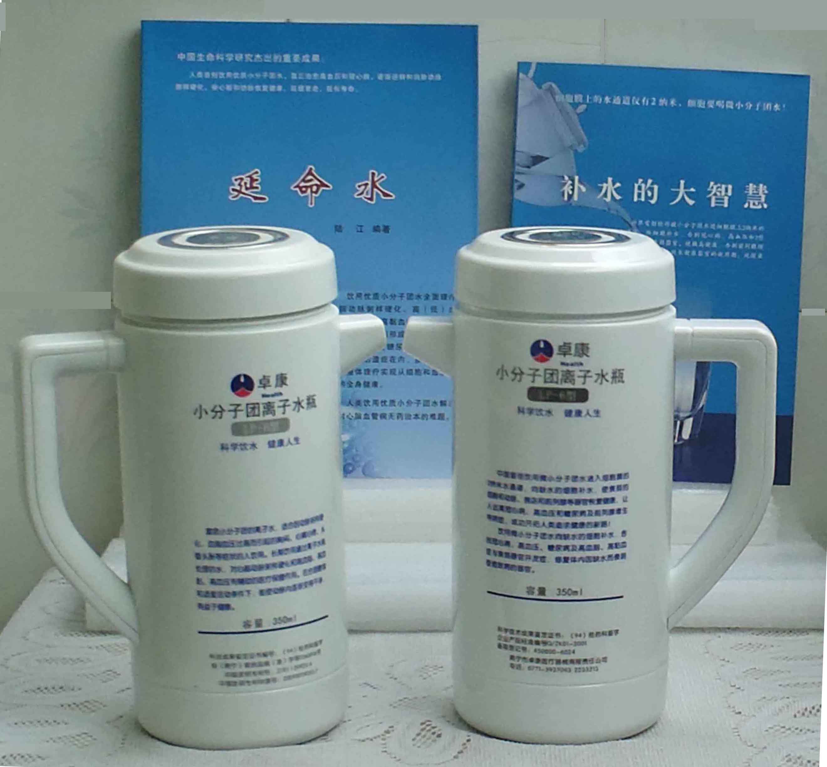 本品大量用戶的使用效果表明,能治愈冠心病、腦動脈硬化、原發(fā)性高(低)血壓、高血脂、高粘血癥、高血尿酸癥(痛風)和2型糖尿病、衰弱器官并發(fā)癥(前列腺增生、腎衰與尿毒癥)及中風后遺癥等療效好。產(chǎn)品配信譽卡。使用壽命30年,不換芯,易清洗。團購優(yōu)惠。從郵局匯款,匯費1%,地址按本頁下方地址、聯(lián)系人寫。從銀行匯款,請點擊[聯(lián)系匯款]欄,從工商銀行匯款,建設銀行、農(nóng)業(yè)銀行匯款,均免收匯費,匯款后20--30分鐘內(nèi)發(fā)短信,可用微信轉(zhuǎn)帳,均免匯費,微信號即手機號13768308380。匯款后,告知你的姓名和地址,我公司聯(lián)系人手機號是:13768308380。卓康牌離子水瓶為我公司獨家生產(chǎn),郵購產(chǎn)品配《補水的大智慧》彩印書一本,另配四季出版社出版的新書《補水的大智慧》一本,并配光盤一張(含央視主持人釆訪陸江的對話視頻)。目前市場和"淘寶網(wǎng)"上有人兜售假冒的偽品,望讀者審察辯別真?zhèn)危旒僬哓飧`假冒本公司的各種認證、獲獎獎項、專利號和外包裝盒上的中英文字,包括科技成果的鑒定意見等,請讀者注意防偽。如何識別假貨?已經(jīng)買了假貨怎么辦?(請點擊[打假掠影][打假掠影])。